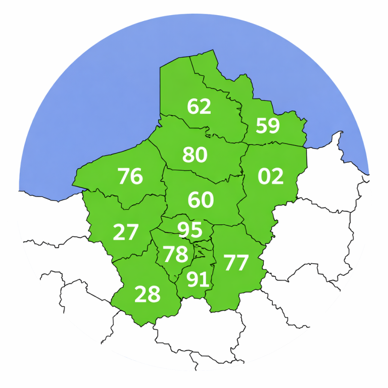 Nous couvrons les départements Pas-De-Calais (62), Nord (59), Aisne (02), Somme (80), Oise (60),